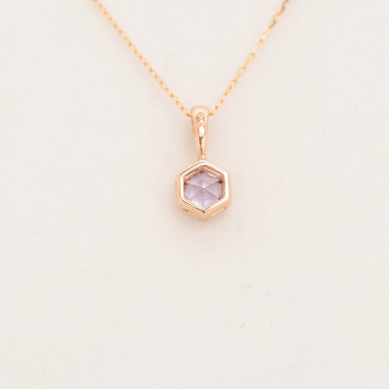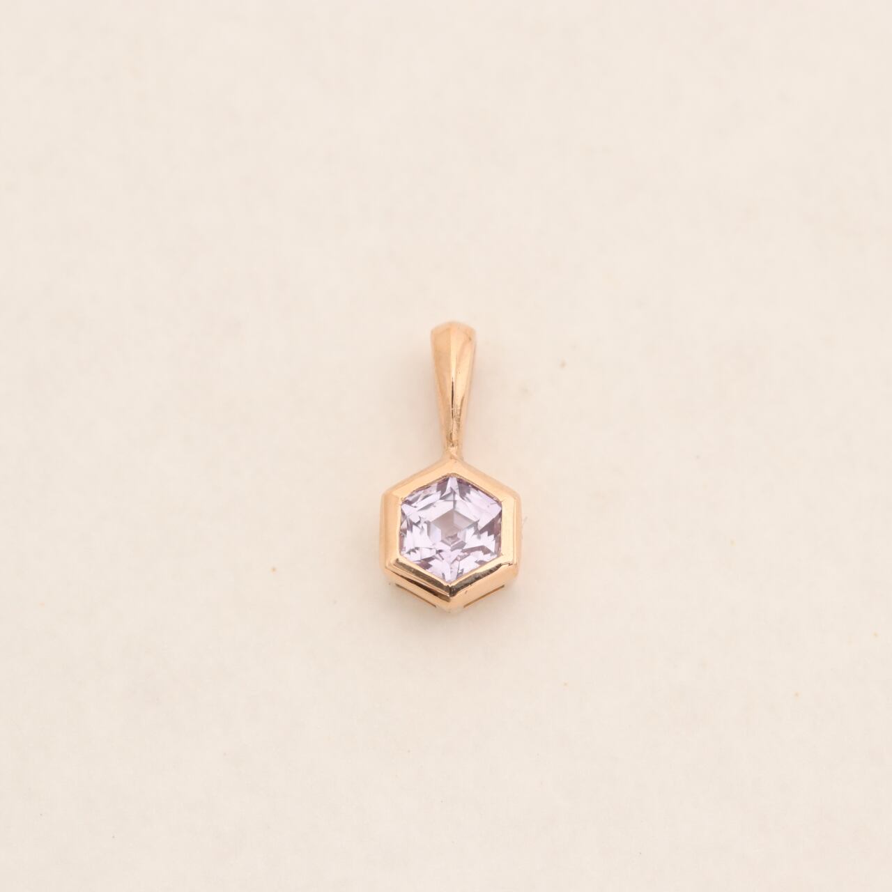 ヘキサゴン(6角形)カットのサファイアを覆輪留めしたペンダントトップです。