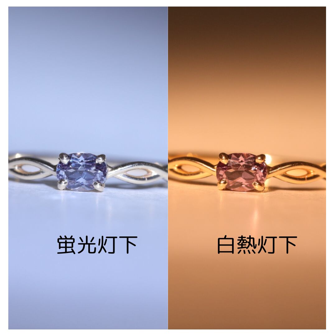 ベキリーブル―ガーネットはマダガスカルのベキリー鉱山で発見された希少なカラーチェンジガーネットで、光源によってブルーグリーンから赤や赤紫色へと色が変わるのが最大の特徴です。バナジウムという微量元素の影響でこの色変化が起こり、昼間の蛍光灯下では神秘的な青色、白熱灯下では情熱的な赤色を見せる神秘的な石です。