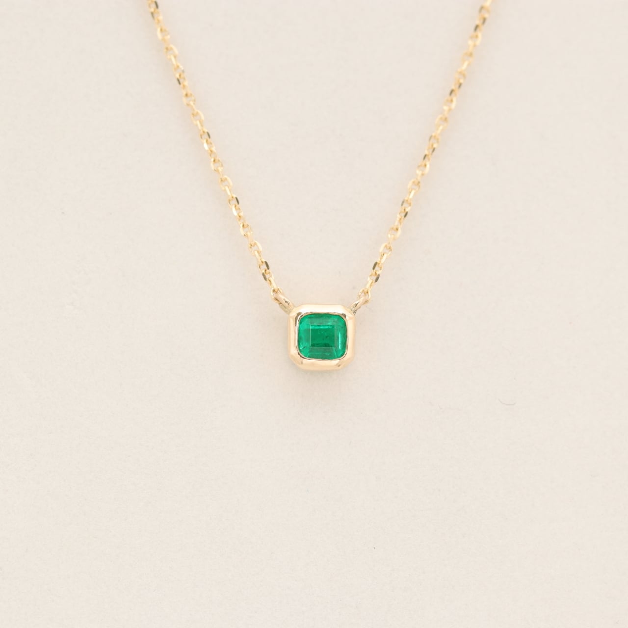 オクタゴンカットのエメラルドネックレスです。