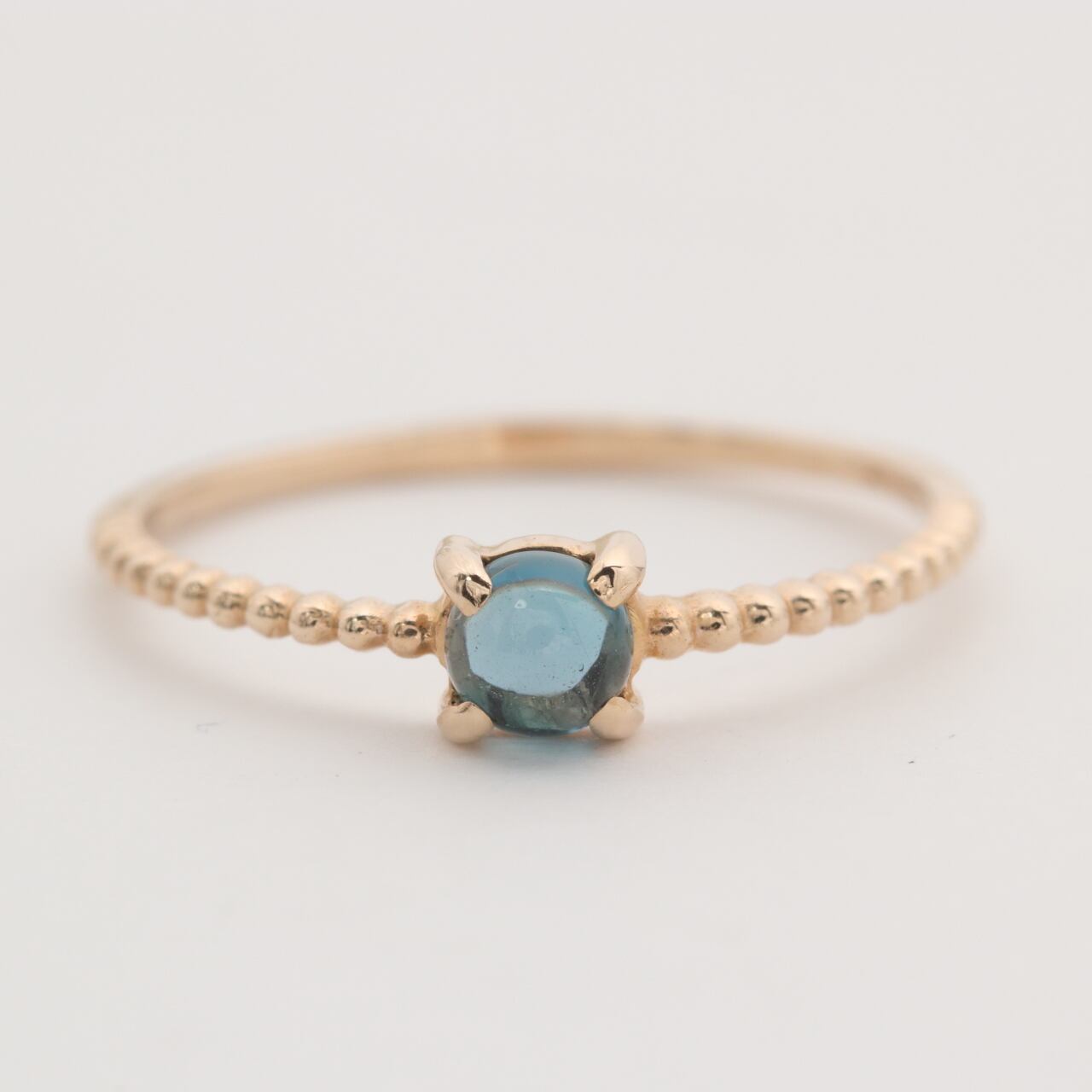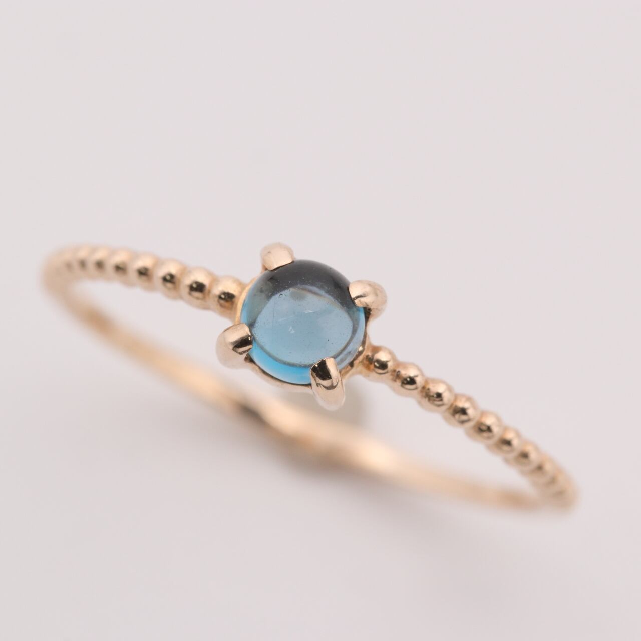 丸くて可愛いロンドンブルートパーズを4本爪で留めて、