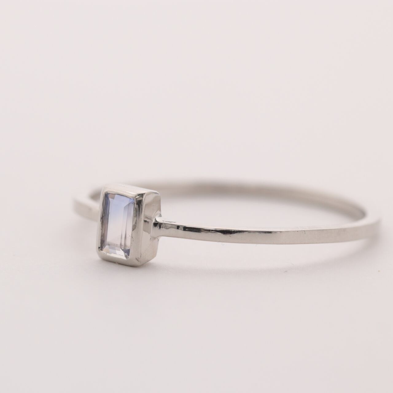 バイカラーサファイア(クリア×ブルー)のシンプルなプラチナリングです。