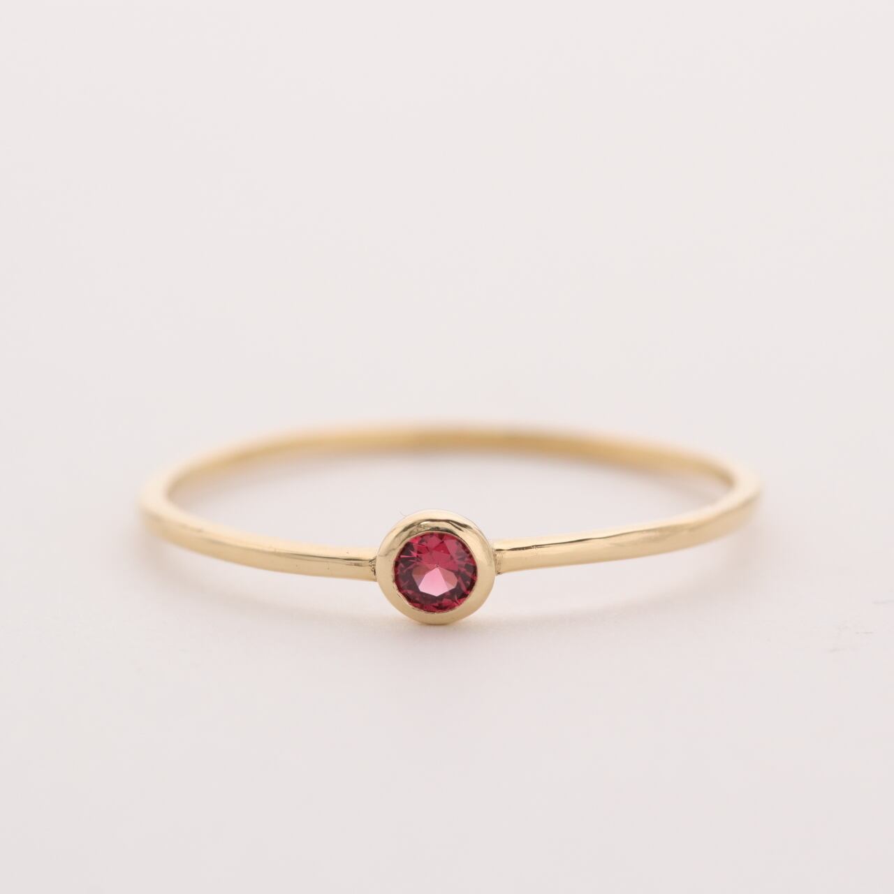 鮮やかな赤なので、金色の強いK18と組み合わせてみました。とても細いのに華やかさのあるリングに仕上がりました。