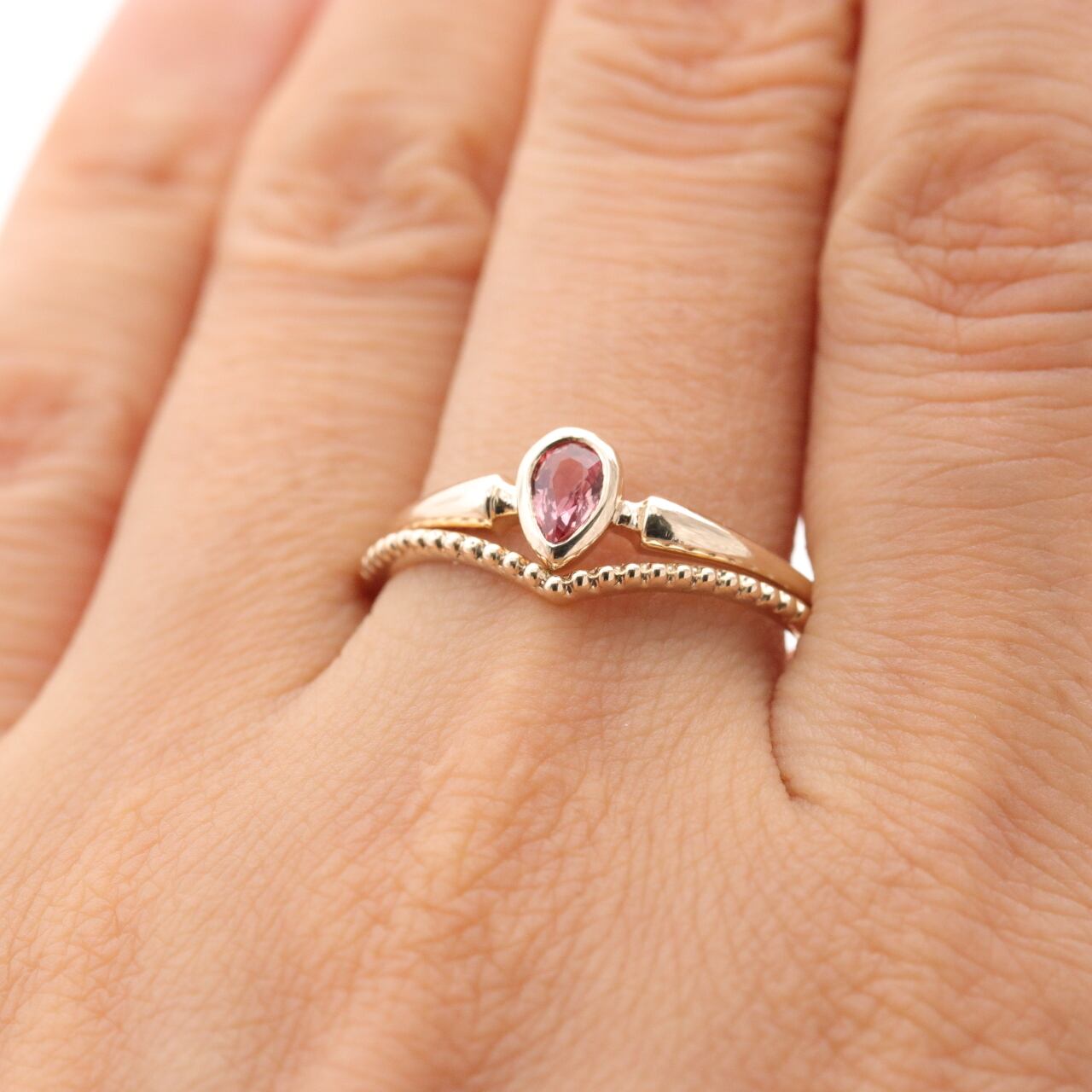 しずく型(ペアシェイプカット)のピンクサファイアリングです。