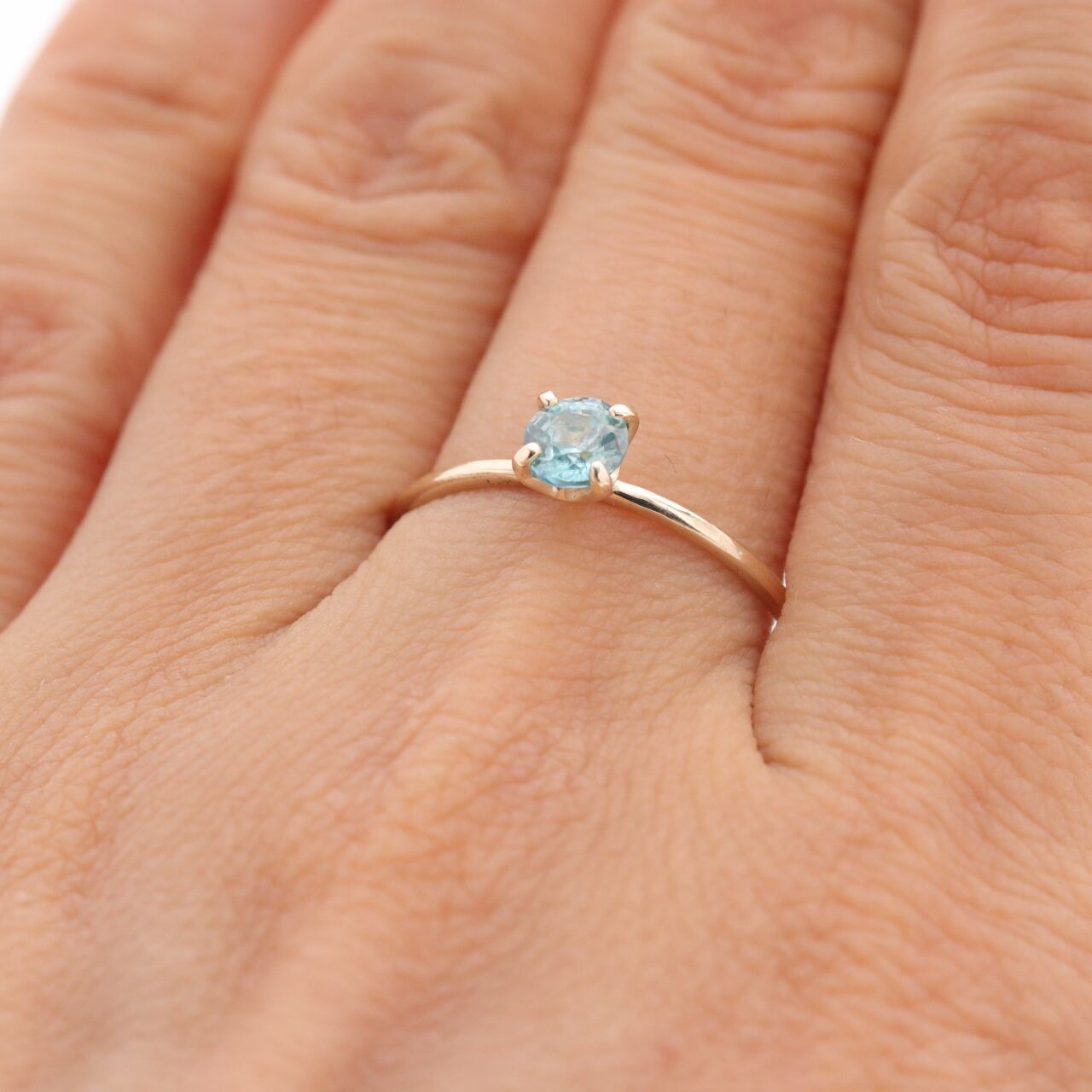 ブルージルコンを4本爪で留めたシンプルリングです。