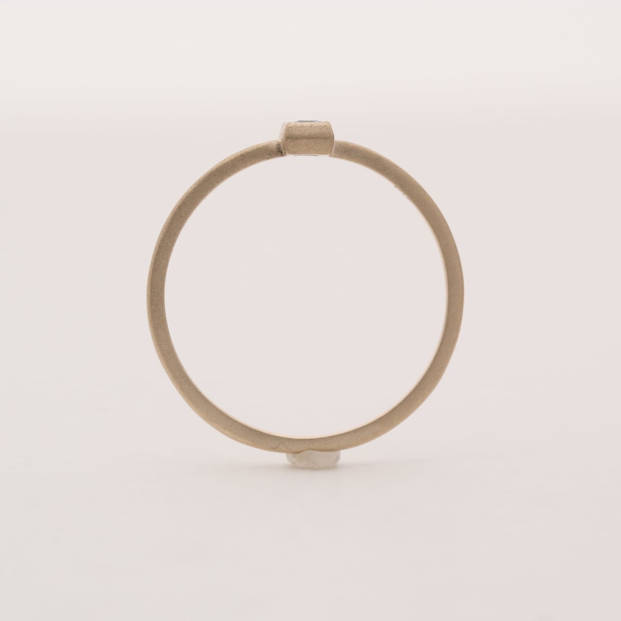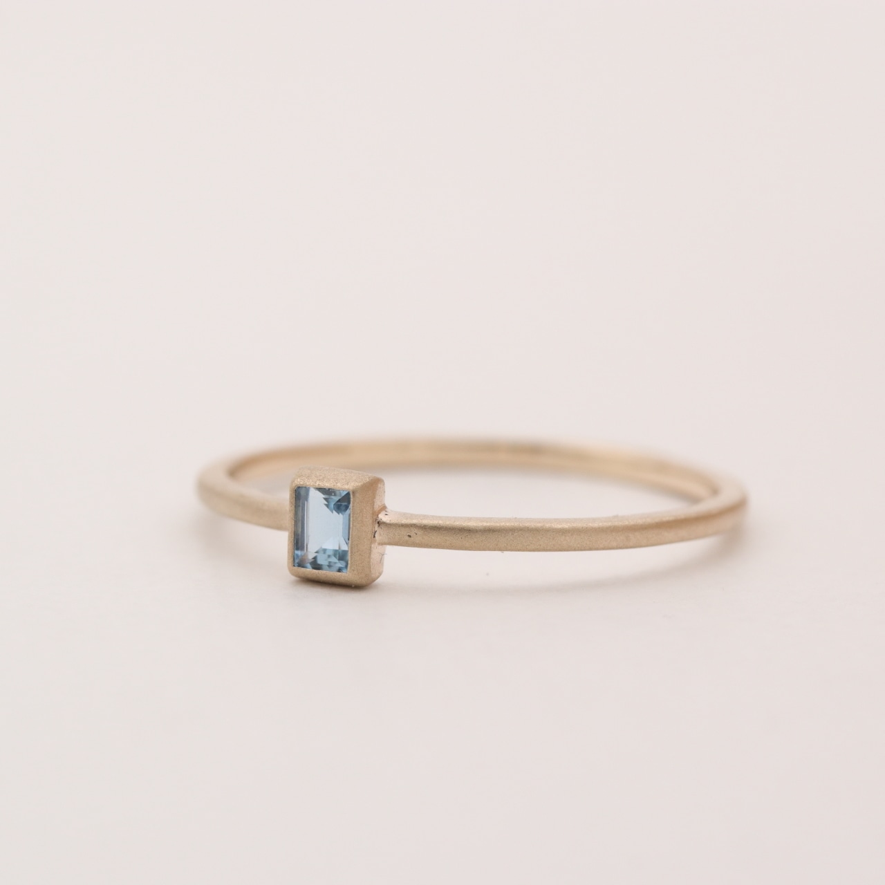 アクアマリンを覆輪留めで留めたシンプルリングです。
