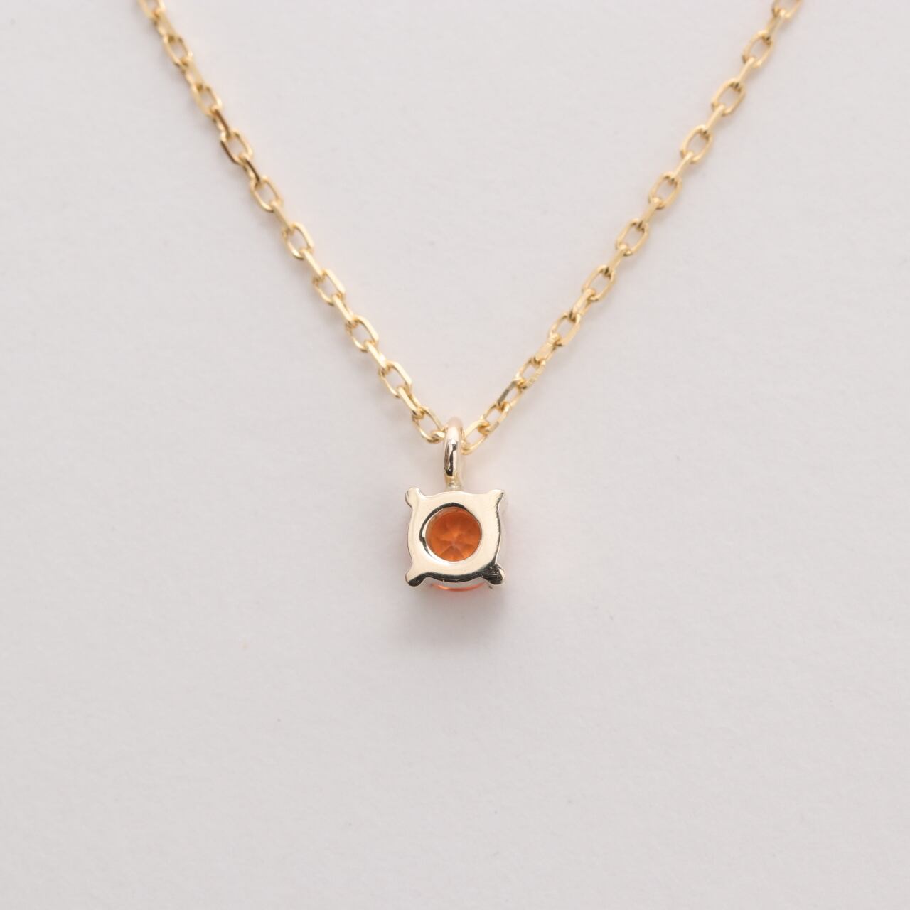 ラウンドカットのオレンジサファイアをシンプルに4本爪で留めています。