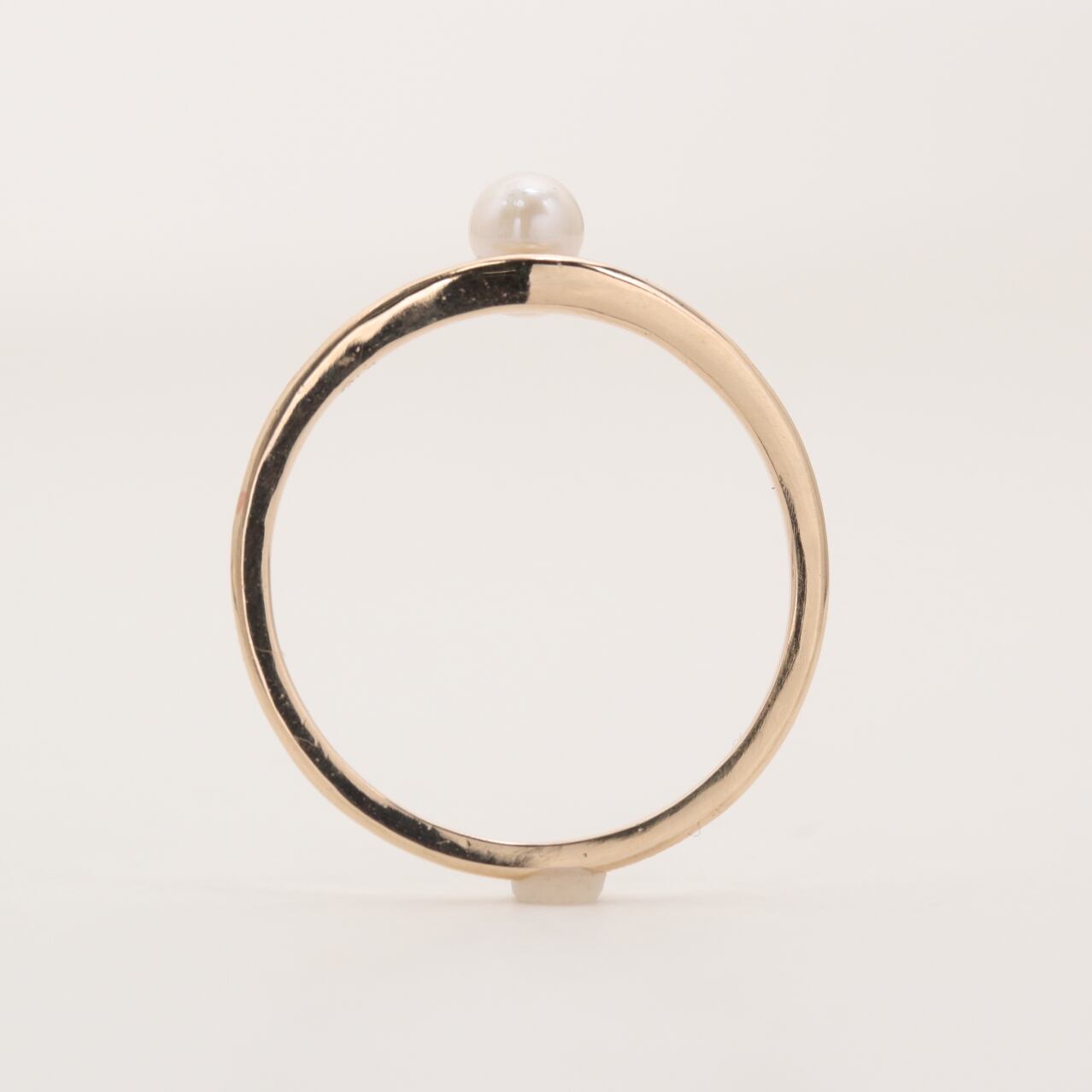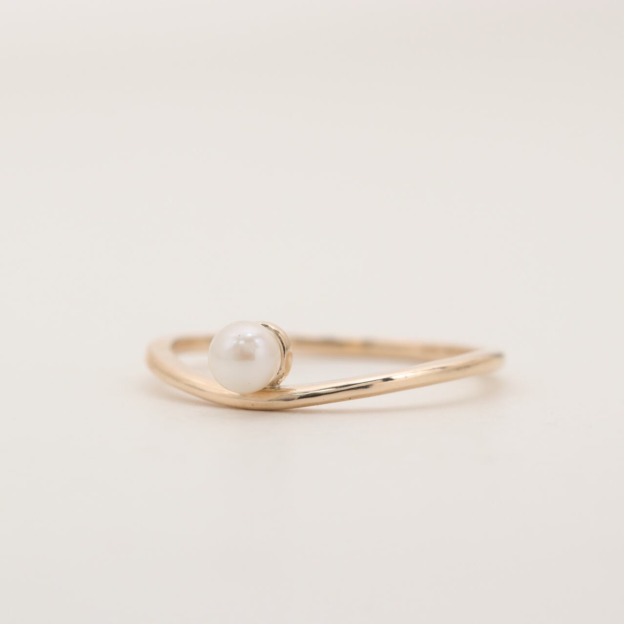4mmのアコヤベビーパールを緩やかなV字のリングに乗っているように見えるように接着で留めています。