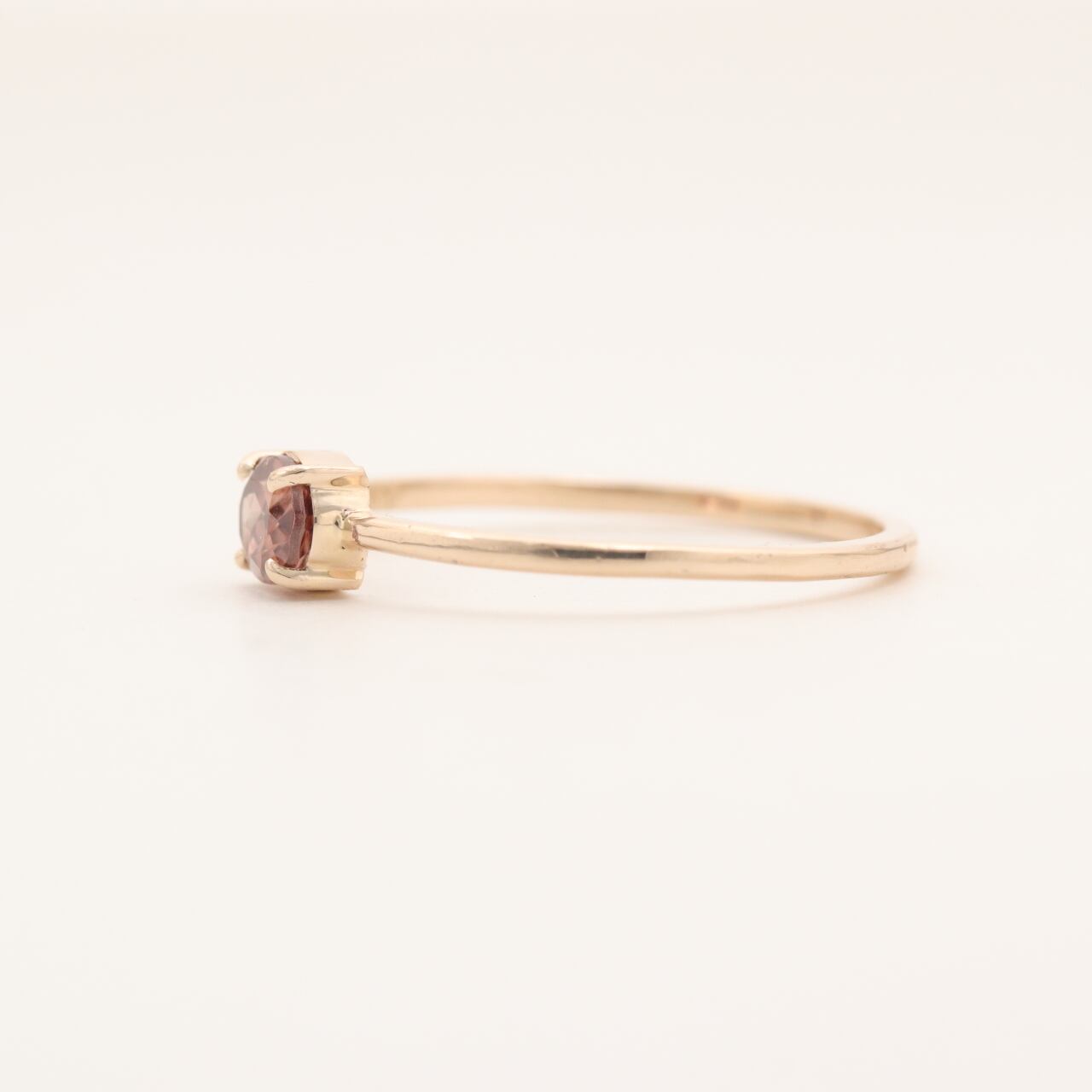 ピンクジルコンは約5.2mm×約4.0mmのオーバルカットを留めています。