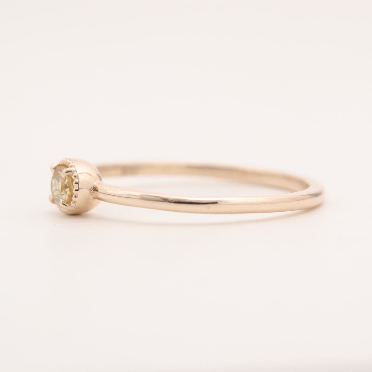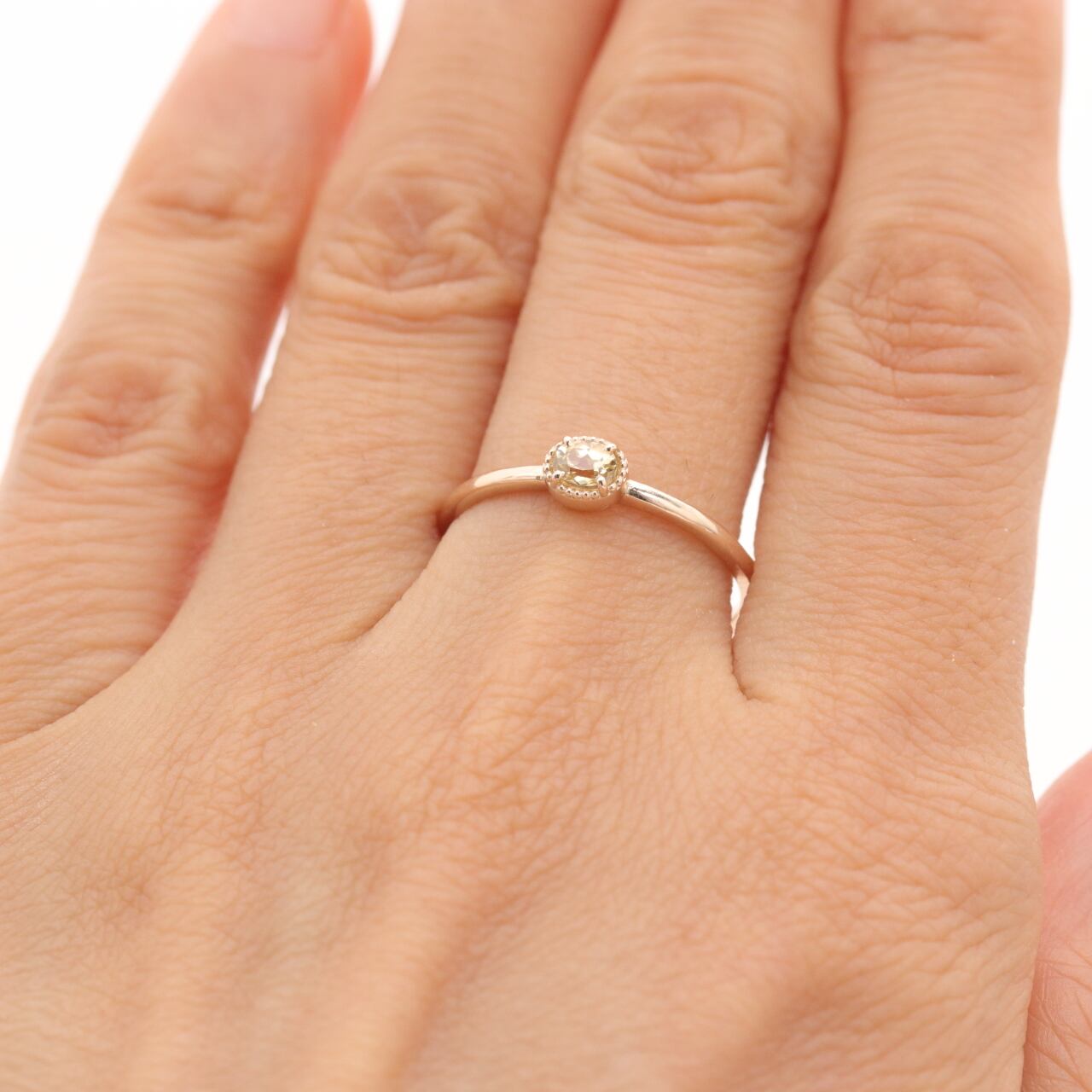 イエロージルコンは約3.8mm×約3.0mmのものを留めています。