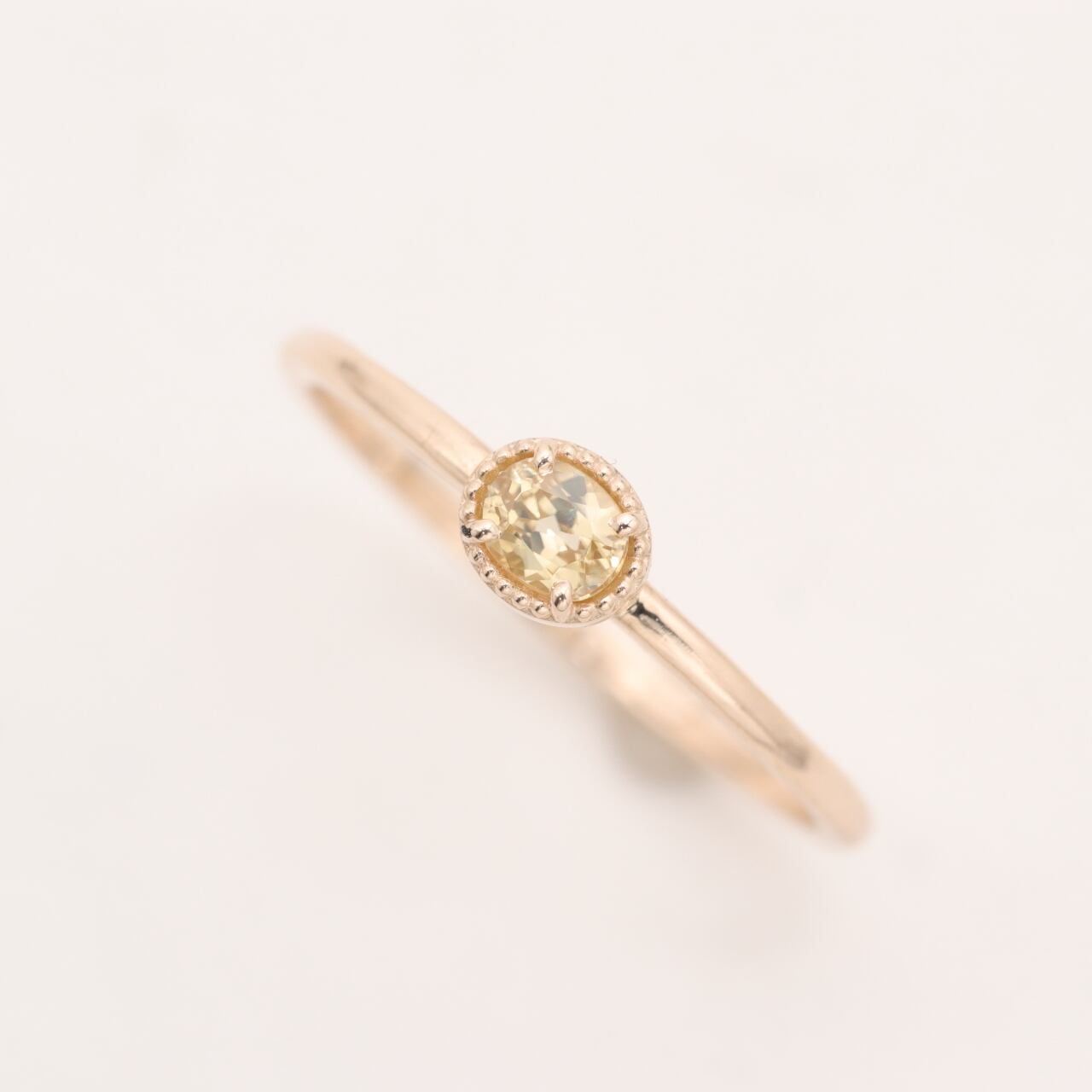 今回留めたイエロージルコンは、透明感のある綺麗なイエローのものを選んで留めています。